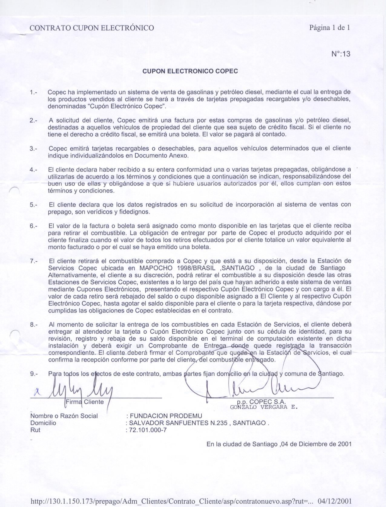 | 19-11-13 | FXP - N�108087 | OTROS GASTOS DE ADMINISTRACION | 19-11-13 | 19-11-13 | Pesos | $ 100.000 | COPEC S.A. | N/A | N/A | N/A | 99520000-7 | COPEC S.A. | SI | N/A | Comp. T16 - N�2000 |